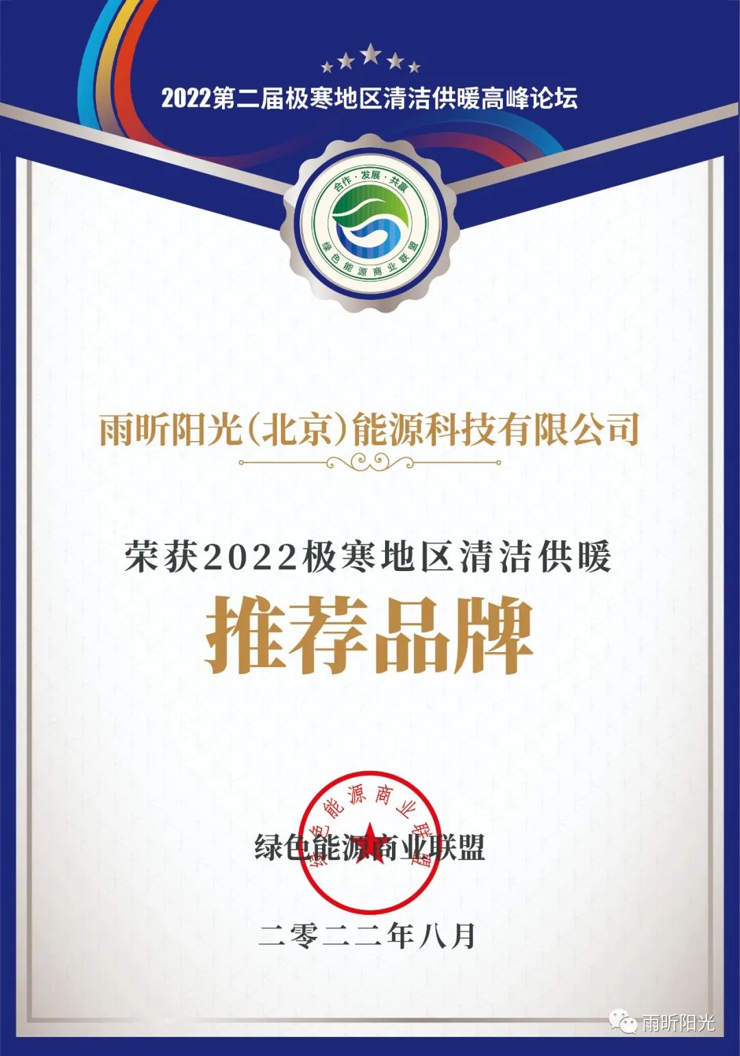 雨昕阳光带来的多能互补解决方案在2022第二届极寒地区清洁供暖高峰论坛大受好评,吸引众多东北大商前来洽谈合作,并获评“极寒地区清洁供暖推荐品牌”。