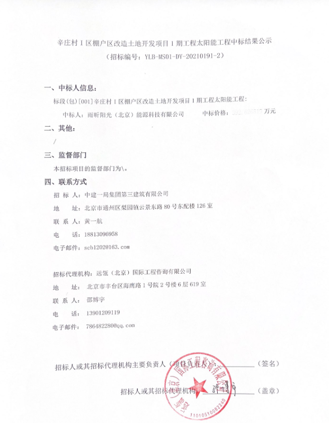 雨昕阳光中标辛庄村I区棚户区改造土地开发项目无动力太阳能工程