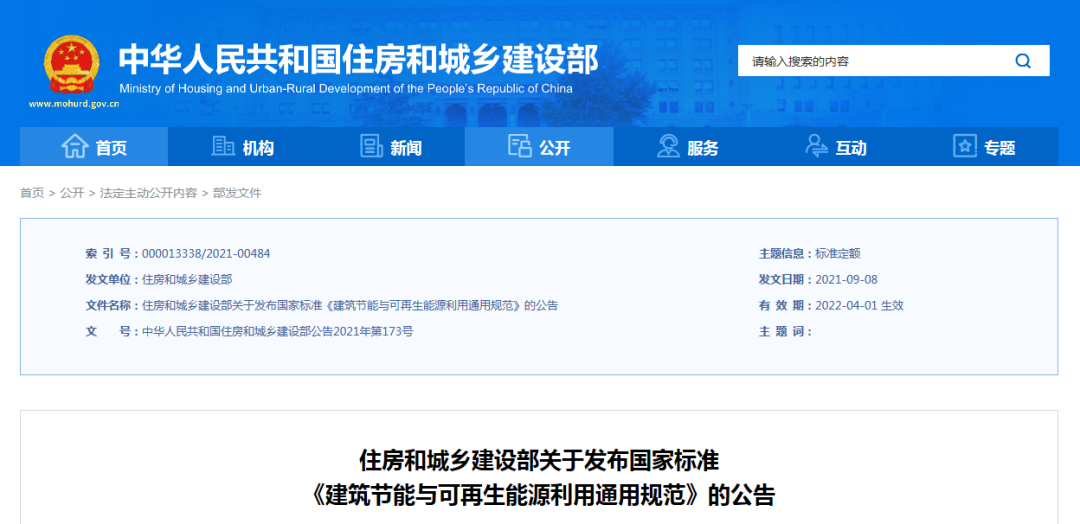 住建部2021年10月13日在官方发布住房和城乡建设部关于发布国家标准《建筑节能与可再生能源利用通用规范》的公告,批准《建筑节能与可再生能源利用通用规范》为国家标准,将于2022年4月1日起实施。 住建部表示, 此次发布的规范为强制性工程建设规范,全部条文必须严格执行。现行工程建设标准相关强制性条文同时废止。现行工程建设标准中有关规定与此次发布规范不一致的,以此次发布规范的规定为准。 《规范》明确:新建建筑应安装太阳能系统,其中的集热器设计使用寿命应高于15年,光伏组件设计使用寿命应高于25年。