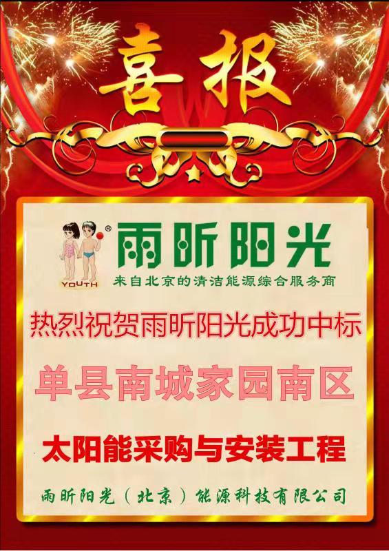 雨昕阳光中标单县南城家园南区太阳能采购与安装工程