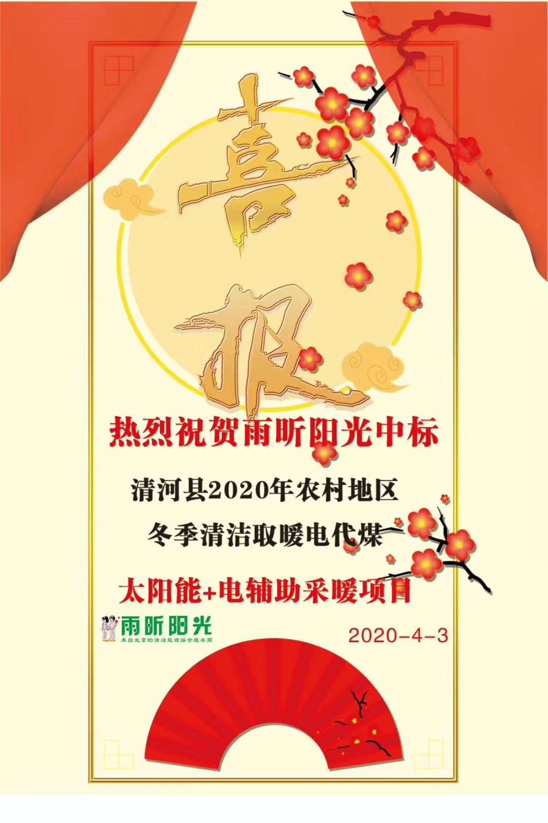 祝贺雨昕阳光中标清河县2020年农村地区冬季清洁取暖电代煤项目