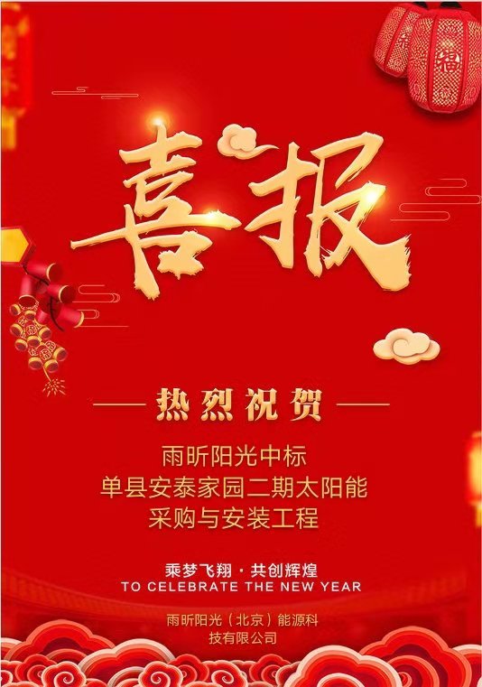雨昕阳光_中标单县安泰家园二期太阳能采购与安装工程项目