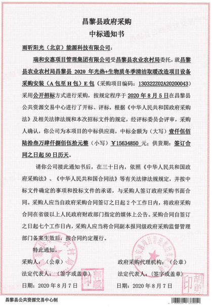 8月7日,河北昌黎县清洁能源项目中标喜讯再次传来,这是