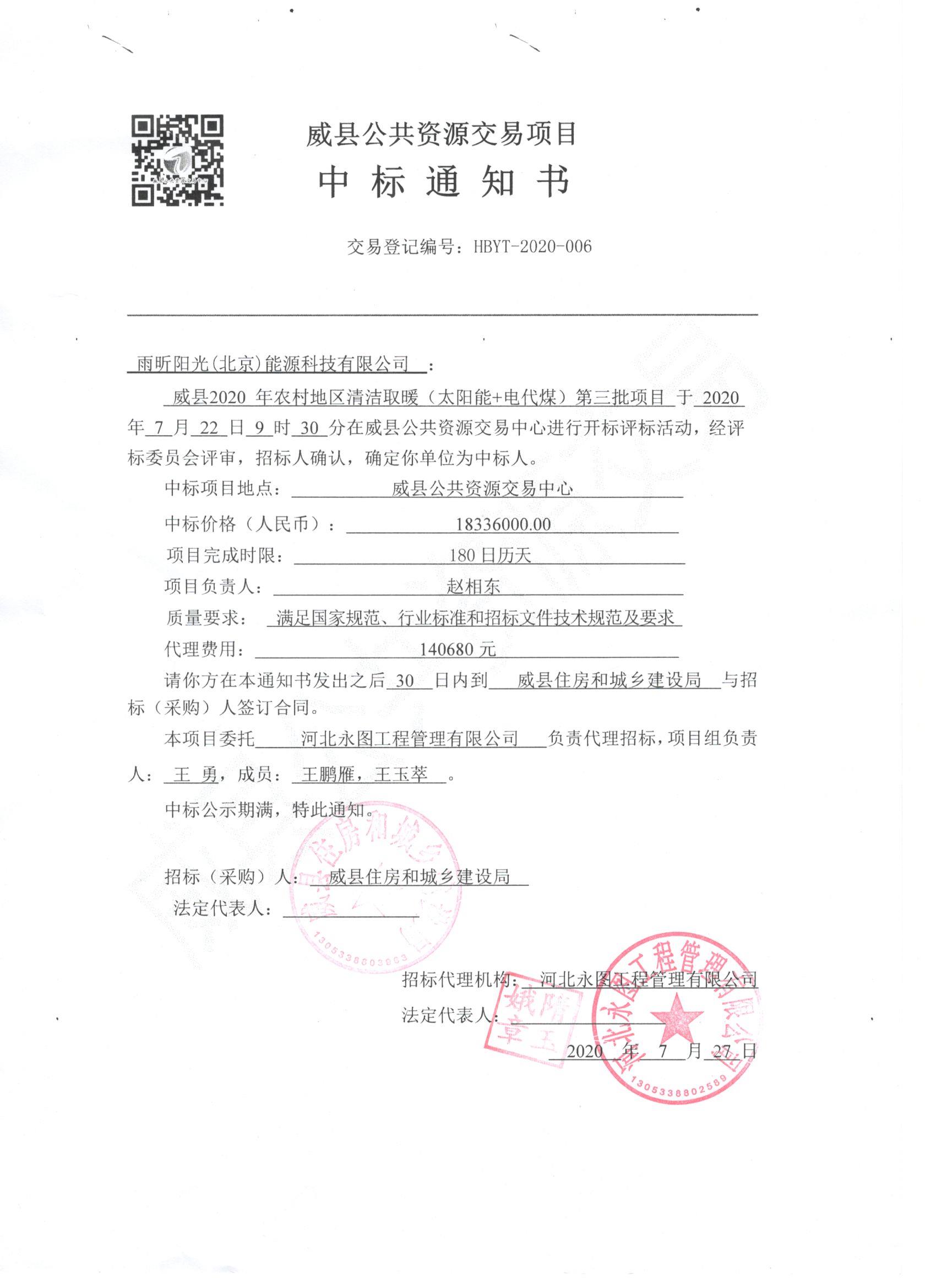 红七月-第七标!7月27日,河北威县清洁能源项目中标喜讯再次传来,这是雨昕阳光公司继威县亮标、山东单县连中两标,北京连中三标之后,雨昕阳光公司七月份第七标,可谓完美收官;再次彰显雨昕阳光公司的产品、服务、经验和技术优势。