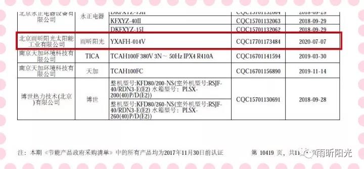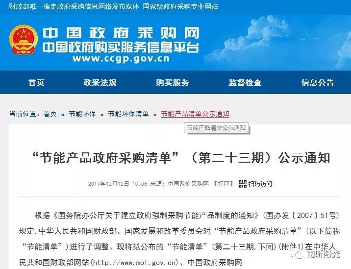 根据《国务院办公厅关于建立政府强制采购节能产品制度的通知》(国办发〔2007〕51号)规定,中华人民共和国财政部、国家发展和改革委员会对“节能产品政府采购清单”(以下简称“节能清单”)进行了调整。现将拟公布的“节能清单”(第二十三期,下同)在中华人民共和国财政部网站(http://www.mof.gov.cn)、中国政府采购网(http://www.ccgp.gov.cn)、国家发展改革委网站(http://www.ndrc.gov.cn)和中国质量认证中心网站(http://www.cqc.com.cn)进行公示。 雨昕阳光空气源热泵、家用太阳能热水系统两类产品均入围。特别是威尼斯wnsr666的入围,是对雨昕阳光空气能品质的再次证明,也是对保卫首都蓝天白云,助力北京煤改电的肯定,雨昕阳光人始终坚持品质决定成败,不忘初心,砥砺前行。